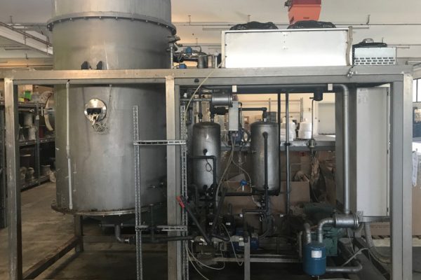 The vacuum evaporator is used and is in excellent condition, the operation is electric, the evaporator overhauled has a heat pump to bring the product to boiling point, the condensation always takes place with the same freon compressor.